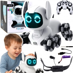 Robotski pes TOOBY združuje tehnologijo, gibanje in interaktivno igro. Vsesmerna kolesca in pogon na vsa kolesa (4WD) zagotavljajo odličen oprijem in natančne manevre, vključno z vrtenjem za 360°, vožnjo naprej/nazaj in gladkim zavijanjem. LED oči in svetlobni učinki skupaj z dinamičnimi zvoki ustvarjajo pravo atmosfero pri vsaki vožnji.