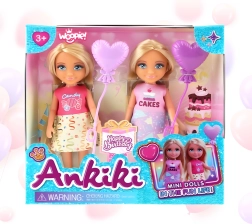 Čudoviti rojstnodnevni set dveh mini punčk Woopie Royal prinaša sladko praznično vzdušje naravnost v otroško sobo. Punčki v stilih Candy in Cakes imata svetle lase, moderne krilca in majice s potiski ter sta pripravljeni na zabavo s srčkastimi baloni. Odlično za skupno igro sorojencev ali prijateljic.