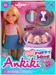 Ta komplet prinaša otrokom veselje do igre in učenja hkrati. Punčka v lepem videzu skrbi za tri ljubke kužke – hrani jih s stekleničko in se z njimi igra z veliko kostjo. Zahvaljujoč živim, dekliškim barvam in prisrčnim detajlom si otroci zlahka ustvarijo svoje zgodbe ter vadijo fino motoriko in domišljijo.
