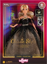 Odkrijte svet mode in elegance s punčko Lily znamke Woopie. Njena bleščeča obleka v črno‑zlatih tonih je okrašena z neštetimi bleščicami, ki se čudovito lesketajo. Dolgi zlato blond lasje kar vabijo k česanju, pletenju in ustvarjanju izvirnih pričesk.