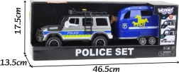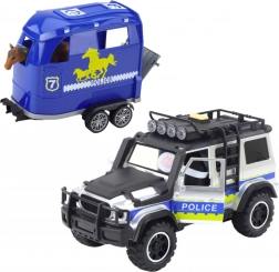 Odkrijte akcijski svet policijske službe z realistično setom, ki združuje vzdržljiv terenski avto in prikolico za prevoz konja. Zahvaljujoč svetlobnim in zvočnim učinkom deluje igra avtentično, otroci pa zlahka ustvarijo lastne zgodbe. Odpirajoča se vrata in odstranljiva prikolica spodbujata domišljijo in fino motoriko.