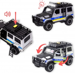 Odlično darilo za otroke od 3 let, ki imajo radi policijo, avtomobile in reševalne akcije. Črno-modra estetika zvesto posnema službene barve, kakovostna plastika pa zagotavlja dolgo življenjsko dobo igrače.