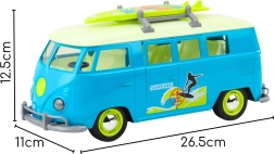 Stajliš modro-bel mikrobus s plažnim vzdušjem bo navdušil male in velike ljubitelje retro avtomobilčkov. Ponuja realistično izvedbo, svetlobne in zvočne učinke, odpirajoča se stranska vrata ter surf na strehi. Del pakiranja so tudi 2× AA baterije, zato se zabava lahko začne takoj.