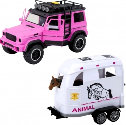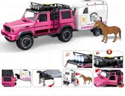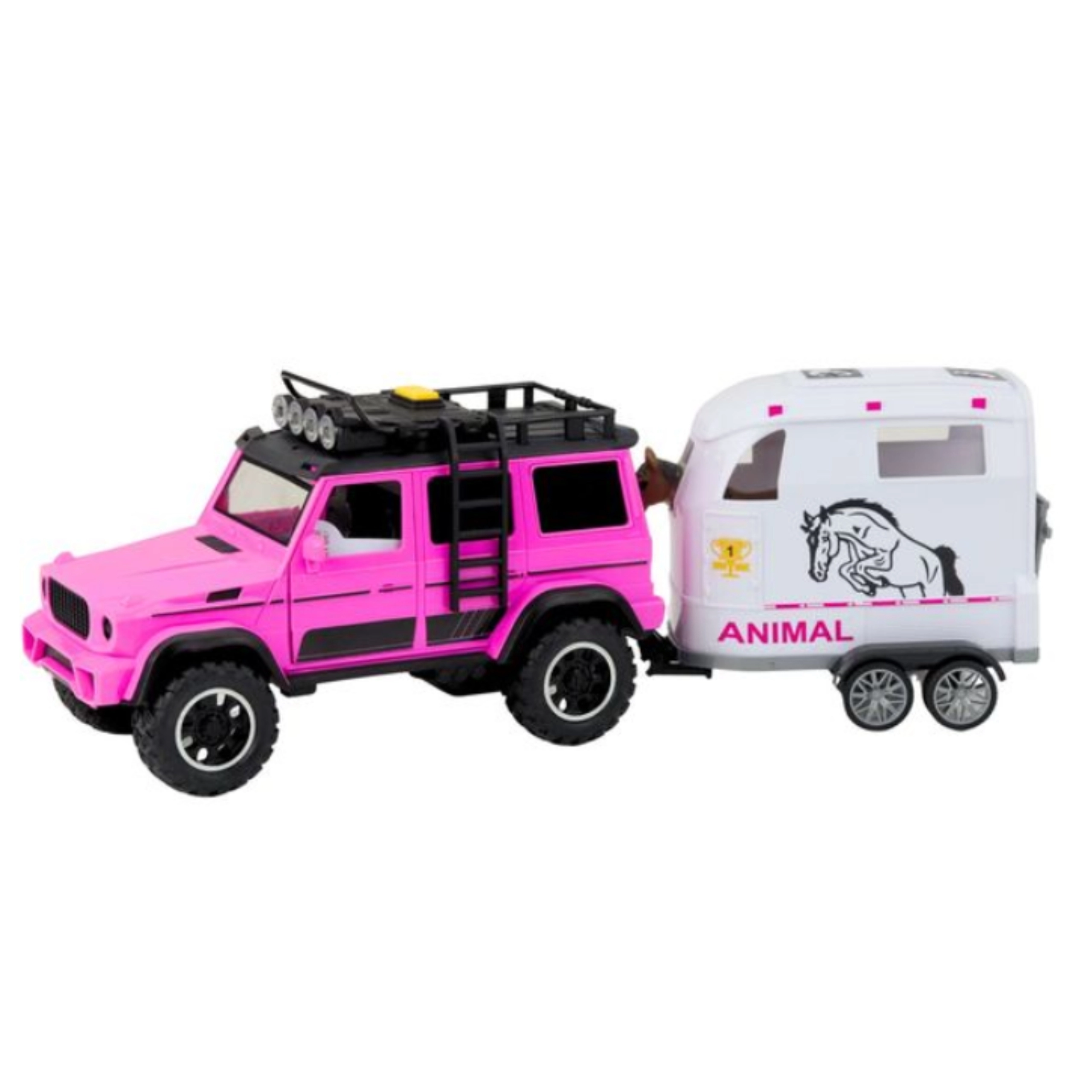Ta podrobno izdelan komplet je idealen za male ljubitelje živali in terenskih vozil. Rožnato-bela barvna kombinacija pritegne na prvi pogled, interaktivni elementi kot so luči, zvoki in odpirajoča se vrata pa prinašajo avtentično igralno izkušnjo. Zahvaljujoč odstranljivi prikolici se lahko otroci igrajo z avtom, prikolico in konjičkom tudi ločeno ter razvijajo domišljijo.