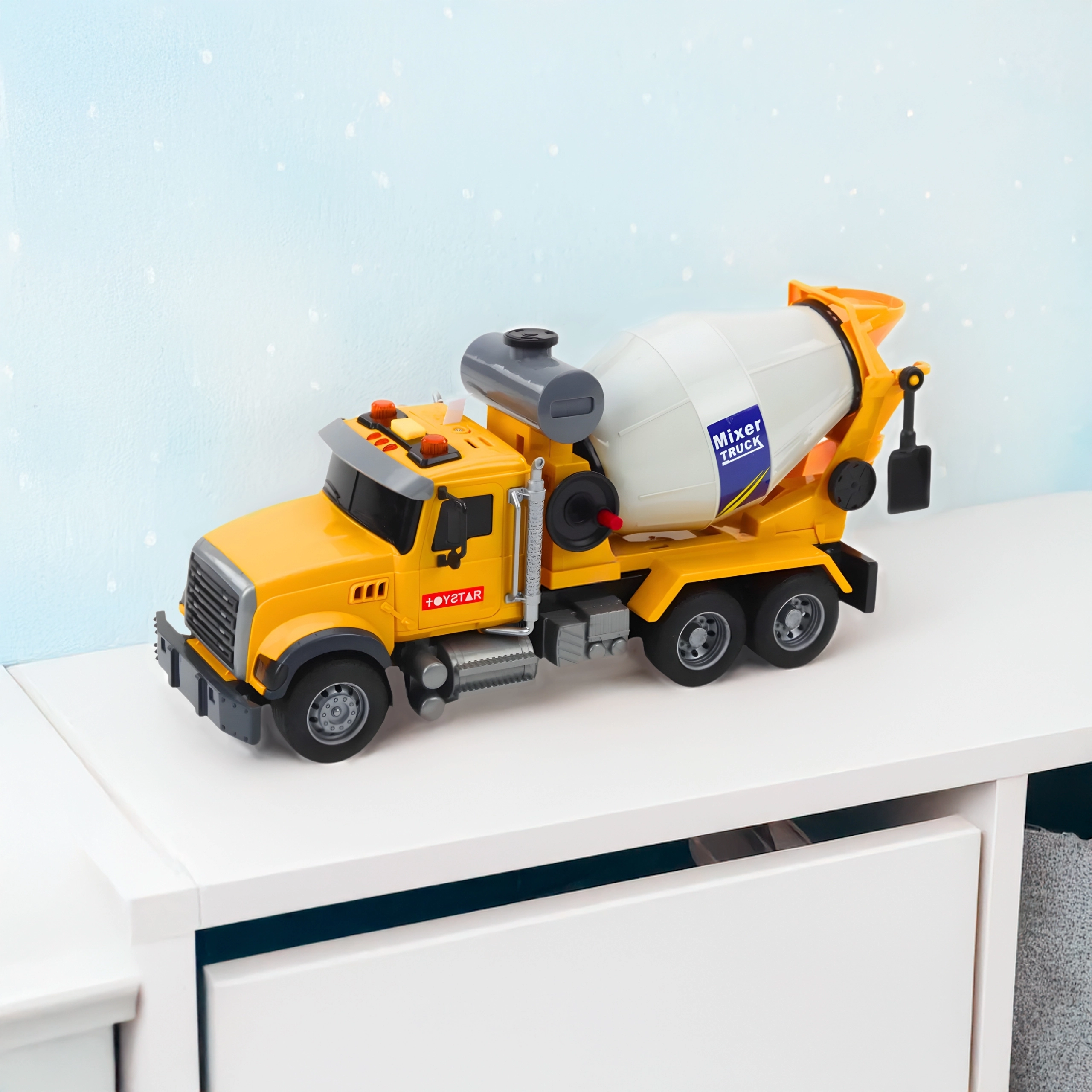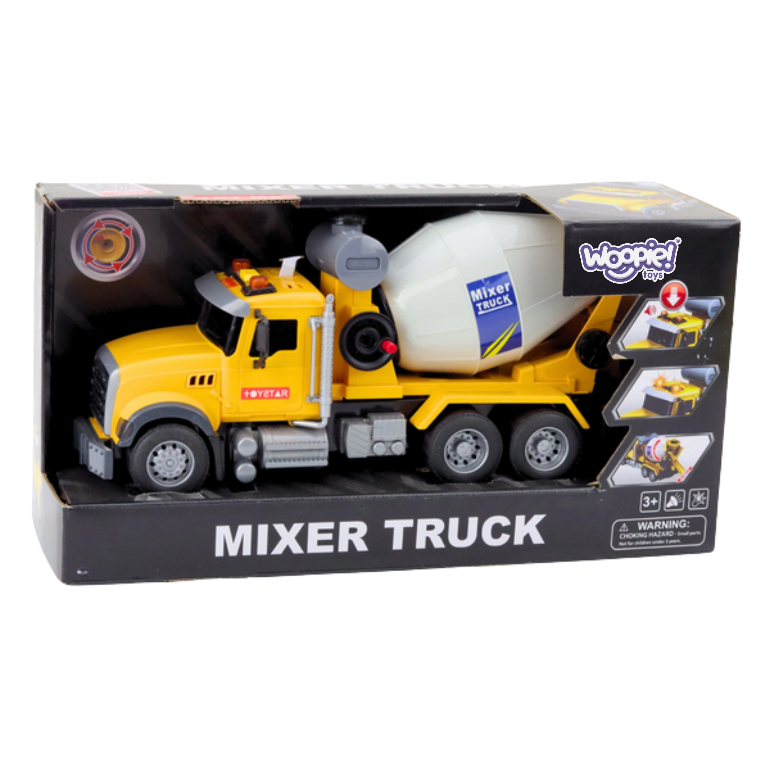 Otroška mešalnica WOOPIE bo razveselila male graditelje z avtentičnim videzom in funkcijami. Vrtljivi mešalni boben deluje kot pri pravem stroju, medtem ko svetlobni svetilniki in zvočni učinki poskrbijo za realistično doživetje igre. Izrazita rumena barva pritegne pozornost, trpežna plastika pa zagotavlja varnost tudi pri vsakodnevni uporabi.