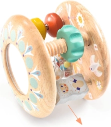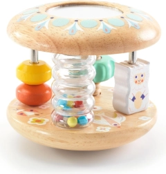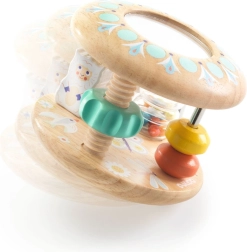 Odkrijte prvo senzorično igračo, ki hkrati zabava in razvija. Lesena ropotulja/valj DJECO Baby Tutti združuje gladek les, ogledalce, kroglice in vrtljive elemente za vidno, slušno in tipno stimulacijo. Varne zaobljene oblike, kakovostna izdelava in spodbuda fine motorike naredijo to igračo idealno izbiro za otroke od približno 10 mesecev dalje.