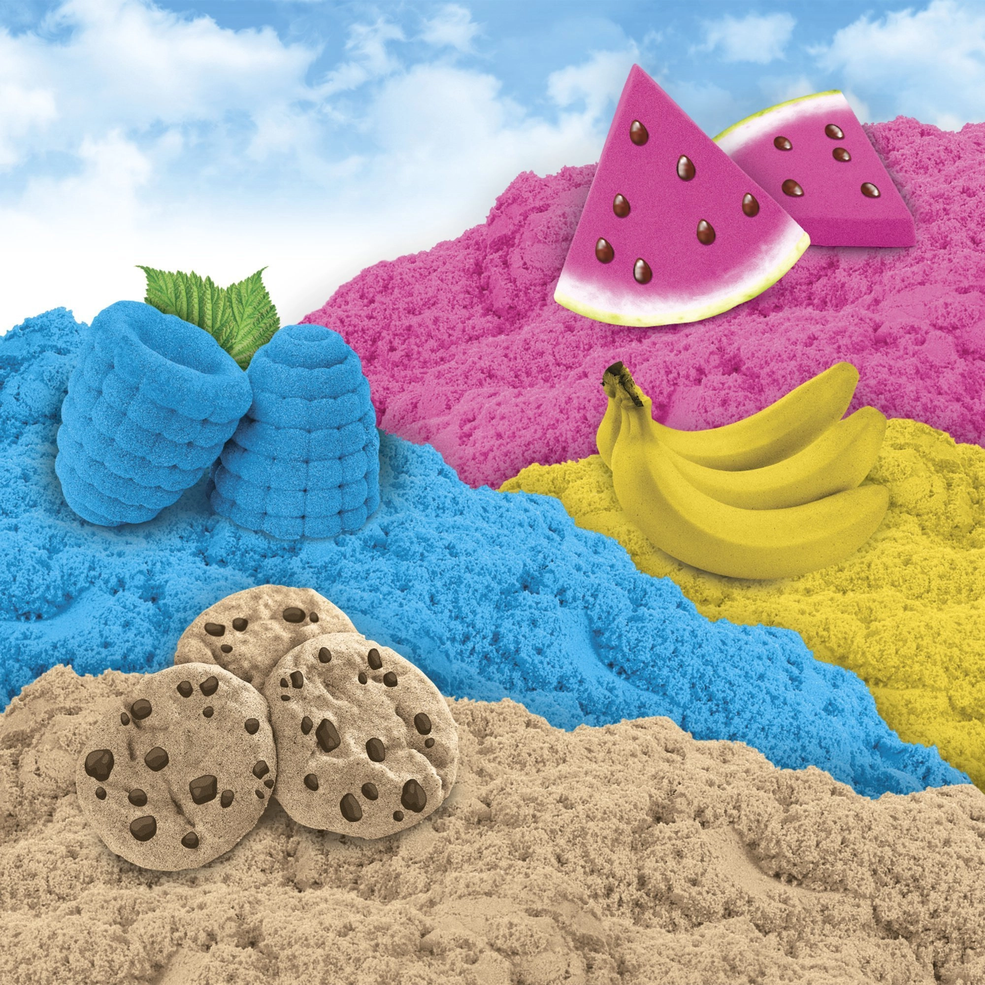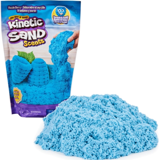 Modri Kinetic Sand z vonjem borovnice združuje oblikovalnost s prijetno aromo za še večji užitek v igri in sprostitev.