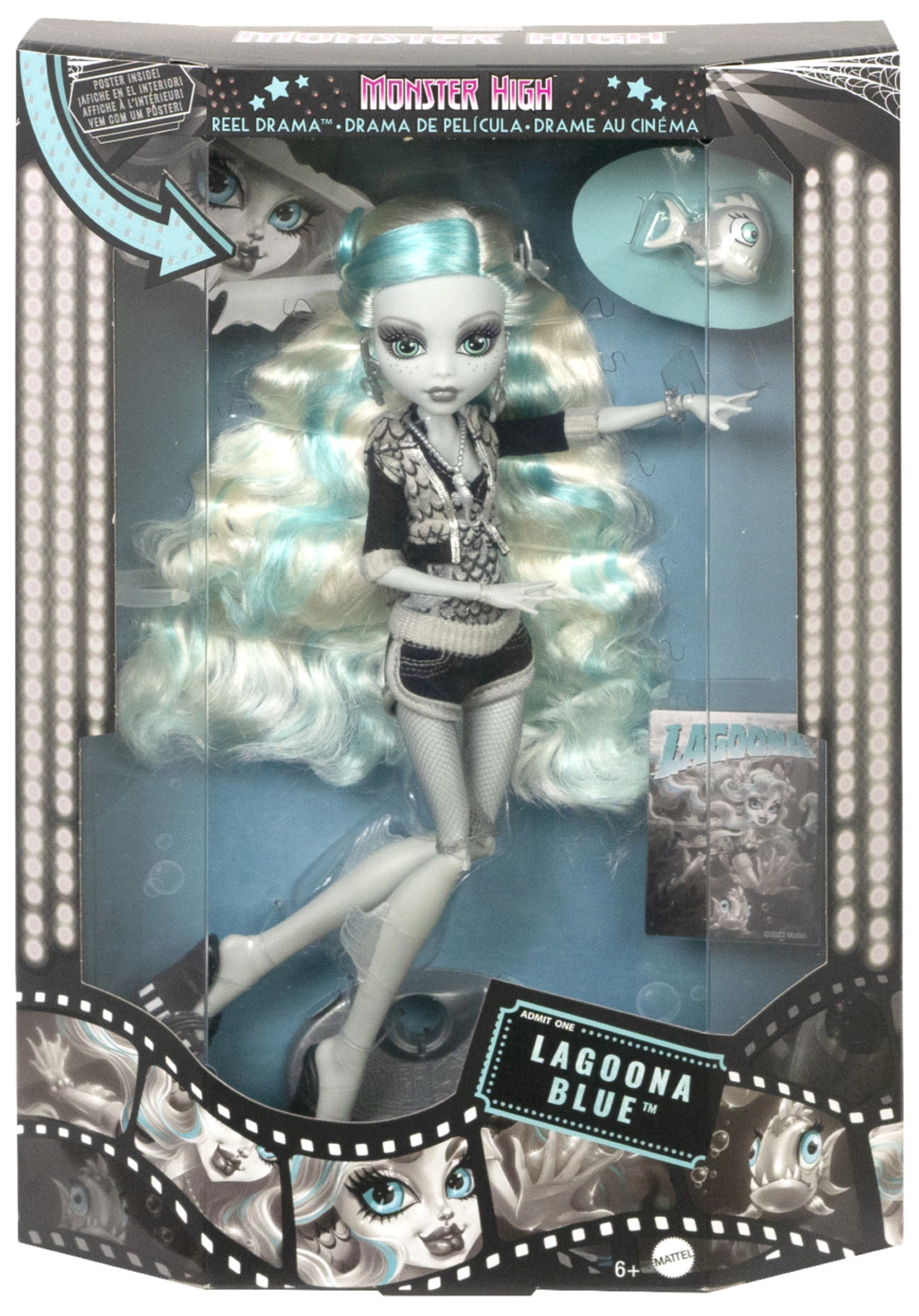 Omejena izdaja Reel Drama se poklanja zlati dobi kinematografije. Lagoona Blue ima eleganten sivo‑turkizen ten kože, dolge valovite lase in make‑up, navdihnjen s filmskim platnom. Zahvaljujoč artikuliranim sklepom jo zlahka nastavite v dinamične poze – idealno za zbiratelje in otroke, ki obožujejo zgodbe iz sveta Monster High.