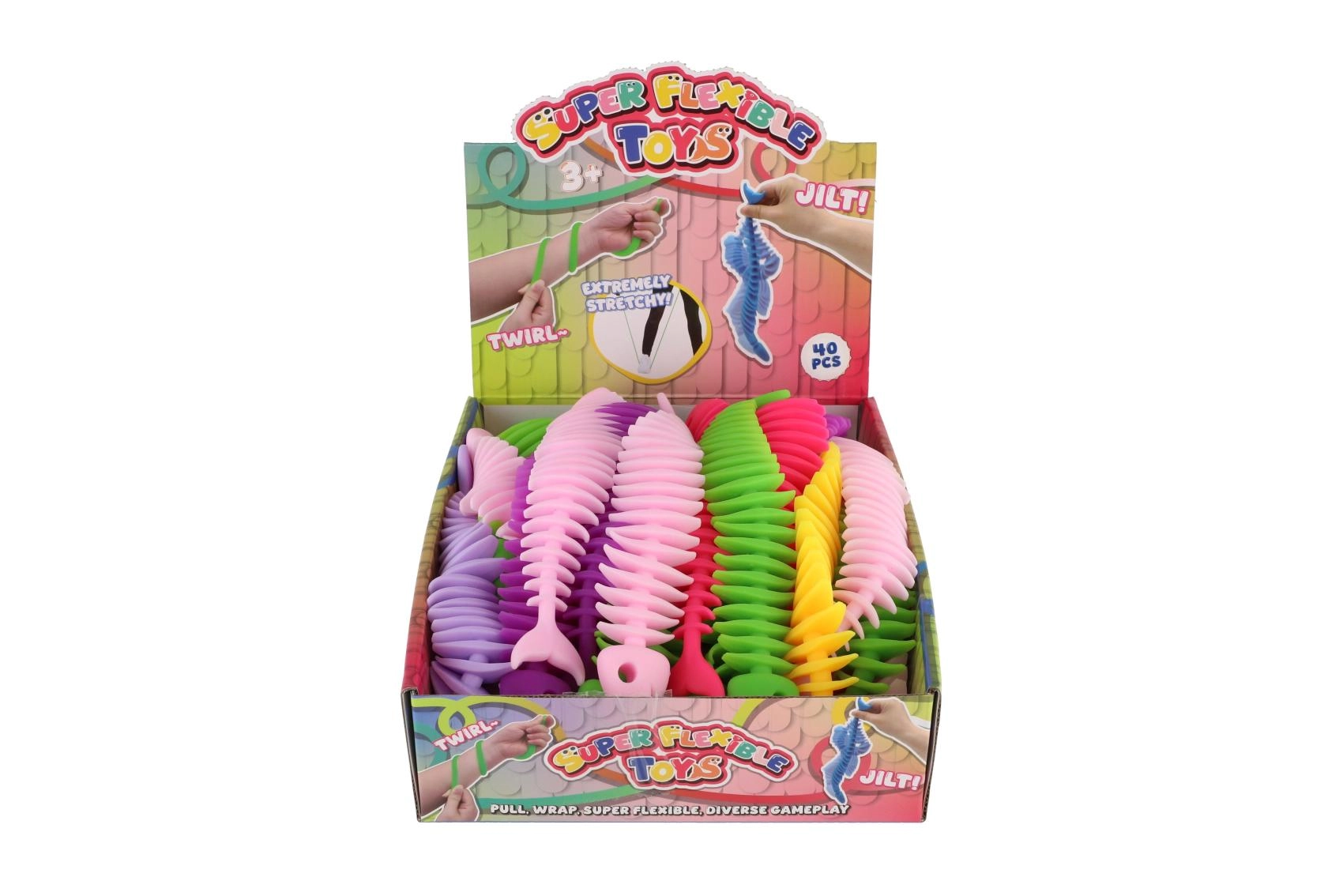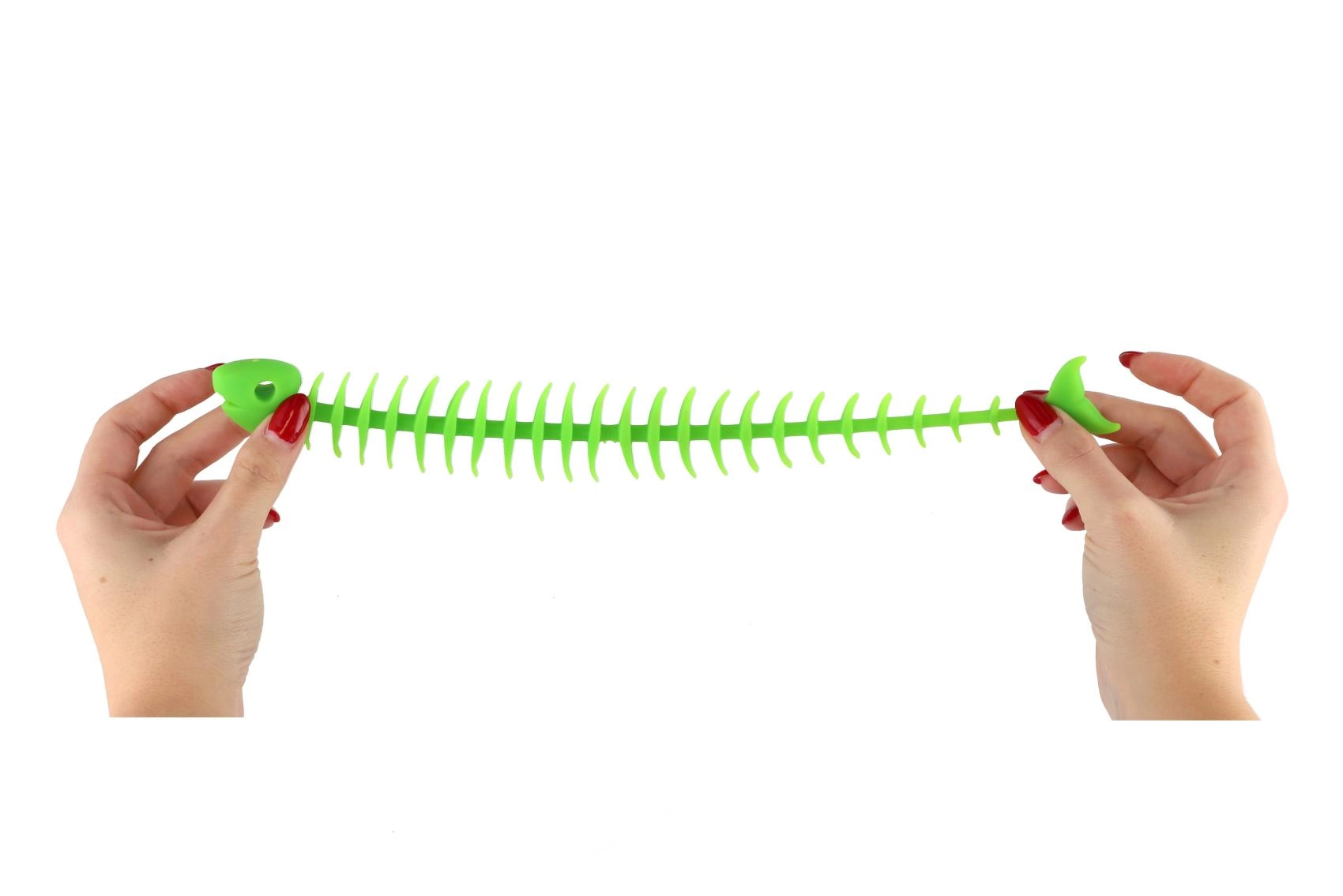 Ta igriva raztegljiva ribja kost je idealen antistresni pripomoček za šolo, pisarno in dom. Silikonski material je mehek, upogljiv in trpežen, zato jo lahko znova in znova stiskate, zvijate in raztezate brez skrbi pred poškodbo. Vesele barve dodatno spodbujajo igrivost in pritegnejo pozornost.