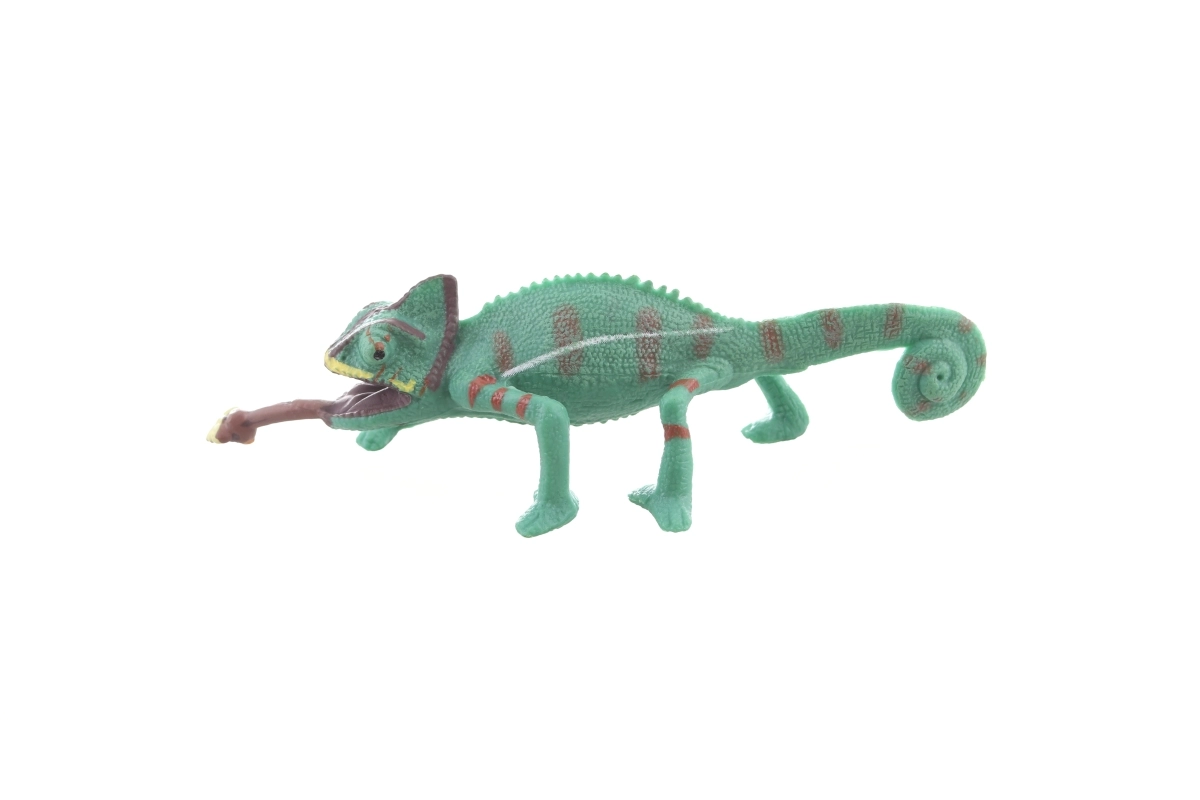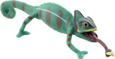 Ta plastični kameleon z merami 12 × 3 × 3,5 cm otrokom prinaša veliko zabave in znanja. Zahvaljujoč podrobni teksturi kože, izrazitemu barvanju in odprti čeljusti z iztegnjenim jezikom odlično posnema pravo vedenje kameleona.