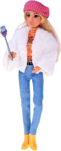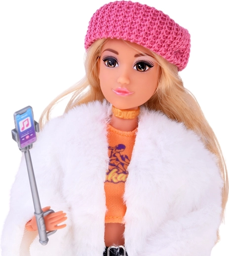 Stilska punčka ANLILY v zimski opravi bo razveselila vsakega malega ljubitelja mode. Ima dolge svetle lase, popolnoma gibljive okončine in bogat komplet dodatkov za ustvarjalno igro. Ne manjkajo mehek bel krznen plašček, rožnata kapa, sončna očala v obliki srčkov, torbica, lonček z napitkom in selfie palica – vse za influencerske prizore in fotografiranje brez zaslona.