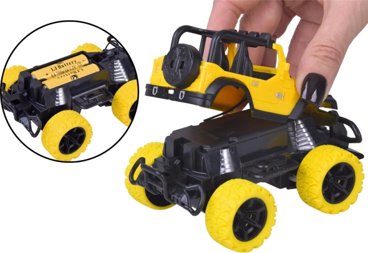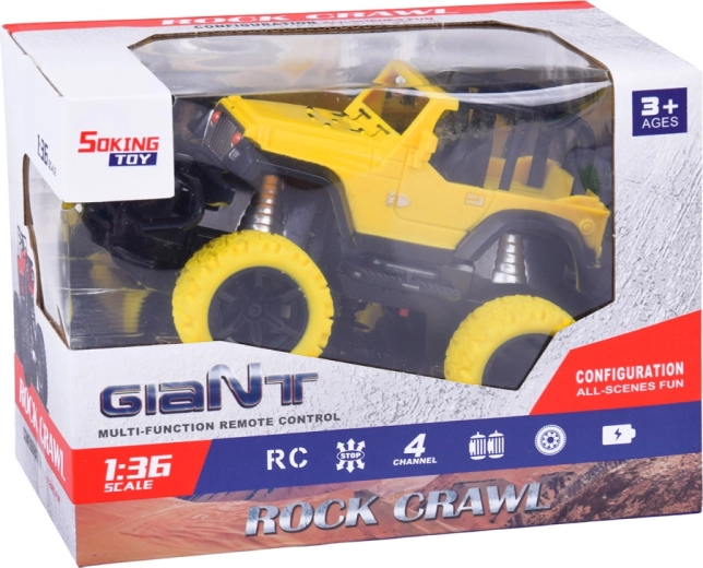 Uživajte v dinamični vožnji s kompaktnih RC off-road avtom v merilu 1:36. Robusten dizajn, izrazita LED osvetlitev in gumijaste pnevmatike zagotavljajo odličen oprijem na različnih podlagah. Upravljanje poteka z enostavnim daljinskim upravljalnikom z anteno, vozilo pa obvlada vožnjo v vseh štirih smereh.