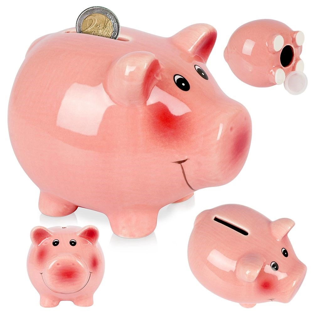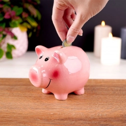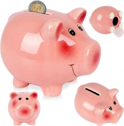 Začnite varčevati z nasmehom. Rožnat keramični prašiček združuje kakovostno izdelavo s praktičnim odpiranjem, zato lahko denar varno odlagate in ga hkrati zlahka vzamete. Zaradi brezčasnega dizajna se poda v otroško sobo, pisarno ali dnevni prostor.