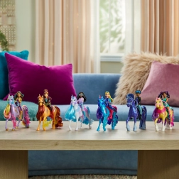Storm očara z znaki magije vremena in dolgo temnomodro grivo in repom, ki ju lahko češete s priloženim glavnikom. Odstranljivo sedlo in uzda zagotovita stabilno ježo in gladke prehode med pozami – odlično za pripovedovanje lastnih zgodb o pogumu in prijateljstvu.
