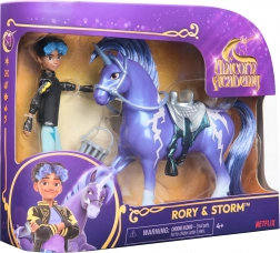 Vstopite v svet UNICORN ACADEMY in prenesite otroško domišljijo v kraljestvo čarovnije. Set z jahačico Rory (pribl. 11 cm) in samorogom Storm (pribl. 13 cm) prinaša kakovostno izdelavo, izrazite detajle in bogate možnosti igre. Zahvaljujoč premičnim sklepom lahko figurice zlahka postavljate v poze in ponovno ustvarjate priljubljene prizore iz serije.