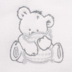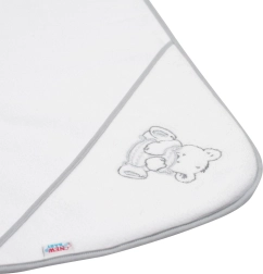 Brisača je zasnovana za vsakodnevno udobje dojenčkov in večjih otrok. Prisrčna vezenina medvedka doda igriv videz, bela barva pa deluje čisto in univerzalno.