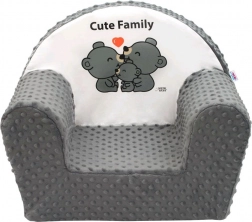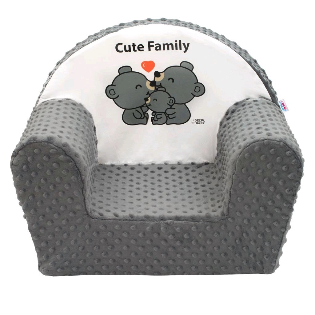 Stilski in funkcionalni naslanjač iz kolekcije New Baby Cute Family bo razveselil otroke in starše. Mehka Minky z nežnimi izboklinami je prijetna na dotik, spodbuja zaznavanje tekstur in ustvarja prijeten kotiček za sprostitev. Siva izvedba se zlahka kombinira z ostalo opremo sobe.