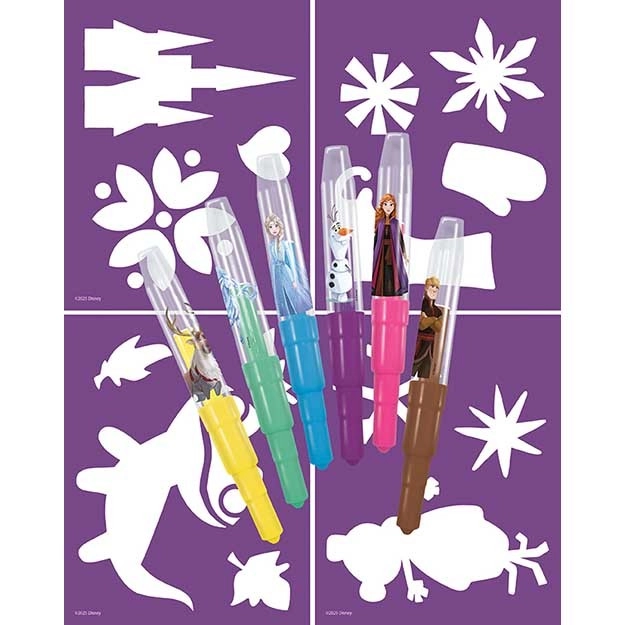 Odkrijte zabavno ustvarjanje s priljubljenim motivom Ledenega kraljestva. Set pihalnih flomastrov omogoča otrokom preprosto ustvarjanje unikatnih slik – dovolj je pihniti skozi flomaster preko šablone in barva se nežno razprši po papirju. Idealno za domače ustvarjanje, okrasitev in izdelavo voščilnic.