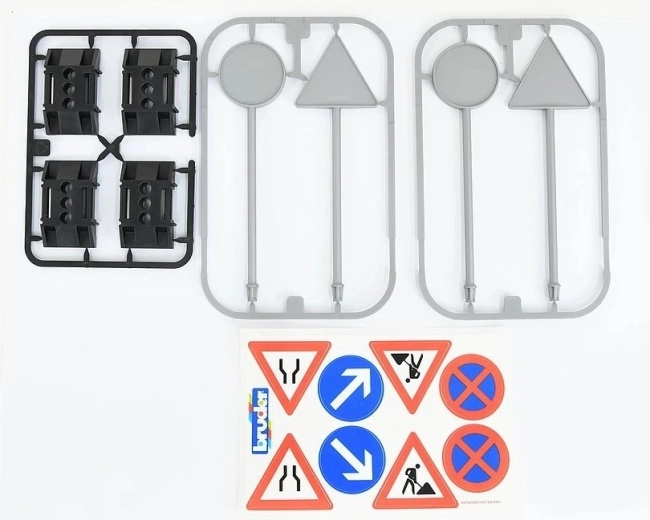 Set prometnih znakov BRUDER otrokom omogoča ustvarjanje pristnih prometnih situacij, označitev gradbišča ali usmerjanje prometa v lastnem igralnem mestu. Zaradi podrobne izvedbe prizori delujejo realistično in igra dobi novo dimenzijo.