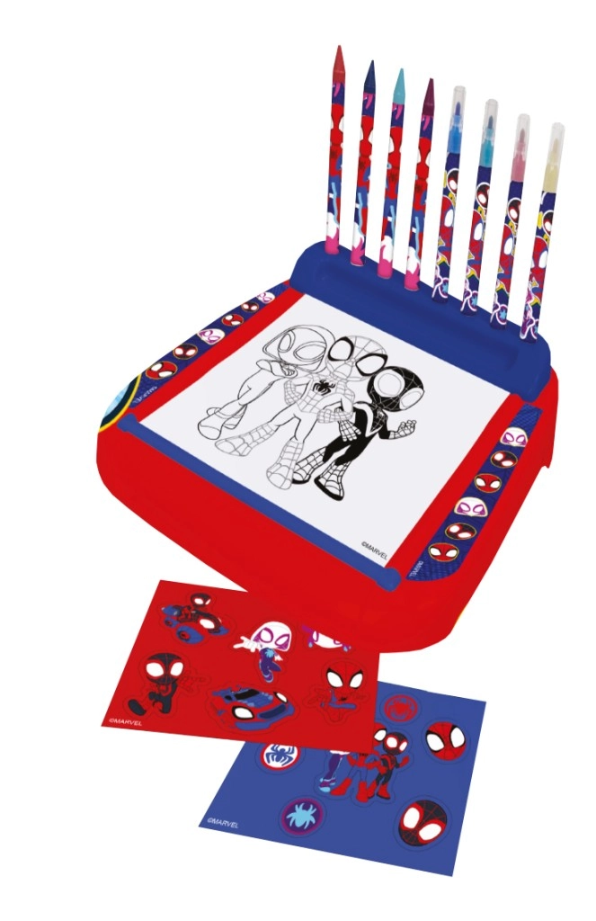 Odkrijte zabavno ustvarjalno stojalo z motivi SPIDEY, ki spremeni barvanje v udobno in pregledno dejavnost. Zaradi role barvank imajo otroci vedno nov sadržaj za barvanje, stojalo pa drži papir na mestu in delovno površino čisto.