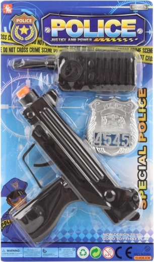 Ta policijski komplet bo navdušil vse male oboževalce akcijskih iger in vlog. Zaradi lahkih plastičnih dodatkov je idealen za igro doma in za kostume. Pištola je varna, ni na naboje, zato se lahko otroci igrajo brez skrbi.