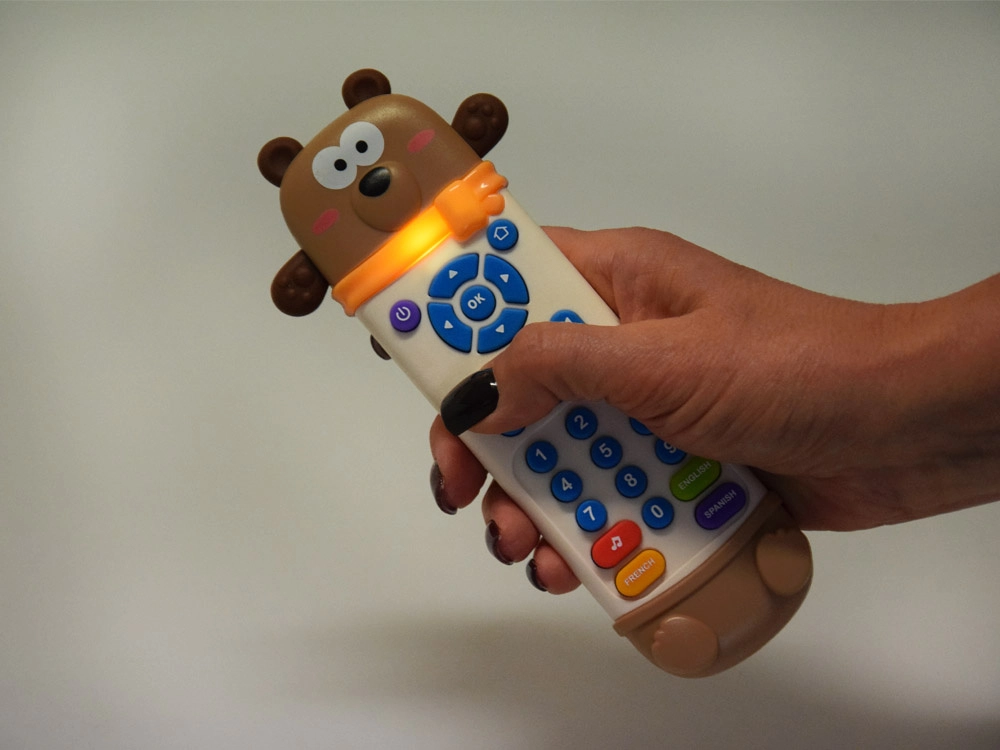 Ta interaktivni upravljalnik v obliki medvedka izgleda kot pravi daljinski upravljalnik, dodatno pa ima mehka gumijasta ušeska in tačke kot grizalo. Barvni, pregledni gumbi spodbujajo raziskovanje, varna zasnova pa je prilagojena najmlajšim otrokom.