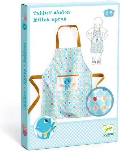 Ljubek otroški predpasnik za male pomočnike v kuhinji. Ponuja praktično zaščito oblačil, udobno nošenje in kakovostno izdelavo znamke DJECO – idealno za prve korake v kuhanju, peki in ustvarjanju.