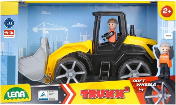 Robusten otroški buldožer LENA TRUXX 2 za igro doma in na prostem navdušuje z mehkimi tihimi kolesi, odpirajočo se kabino in premično žlico z ročajem. Priložena je figurka voznika, odporne jeklene osi in varna izdelava. Izdelano v Evropi, certifikat TÜV, primerno od 2 let dalje.