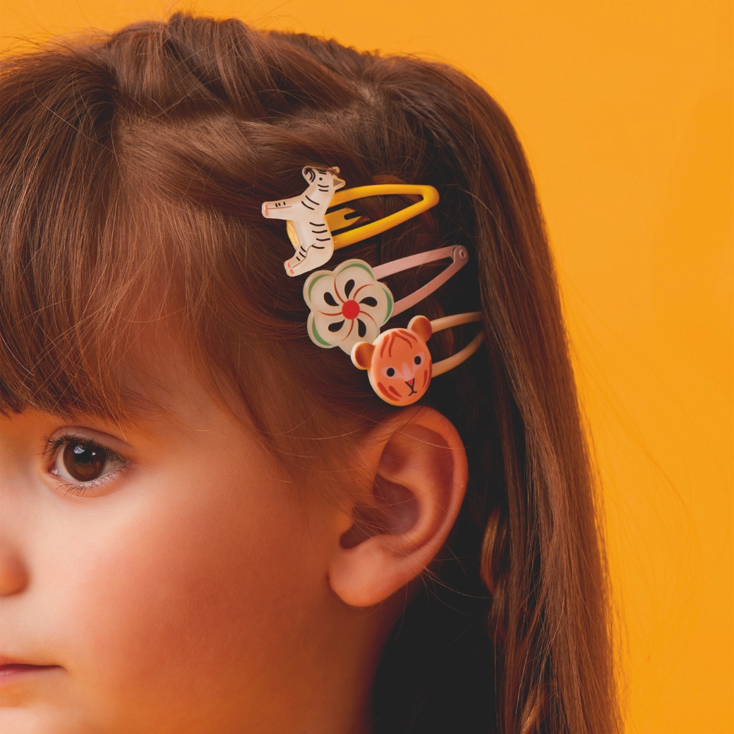 Popestrite svojo pričesko z igrivim setom lasnic Colomba od DJECO. Slogovne barve in izvirni motivi dodajo vsakdanjim in svečanim pričeskam ščepec exotike. Lahka zasnova, nežno pritrjevanje brez vlečenja las in zanesljivo držanje skozi ves dan.