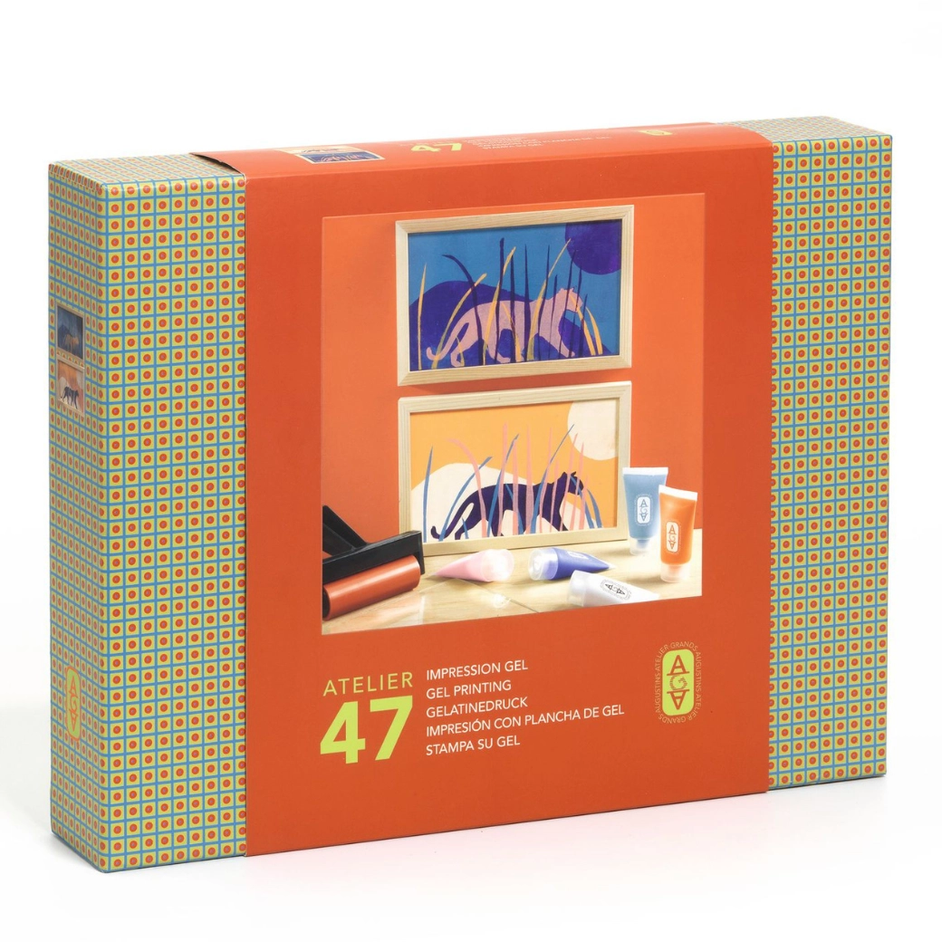 Komplet za gelni tisk DJECO Atelier približa priljubljeno tehniko gelli printinga doma. Na prozorno gelno ploščo nanesete barvo, jo razvaljate z brayerjem in s šablonami ustvarite edinstvene motive. Nato le pritisnete papir in prenesete odtis – vsak tisk je original.