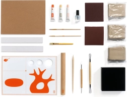 Urejen komplet z valjčkom, lesenimi in zankastimi orodji, čopiči, pigmenti, paleto ter vrečkami z maso vam omogoča tekoč prehod od modeliranja do slikanja.