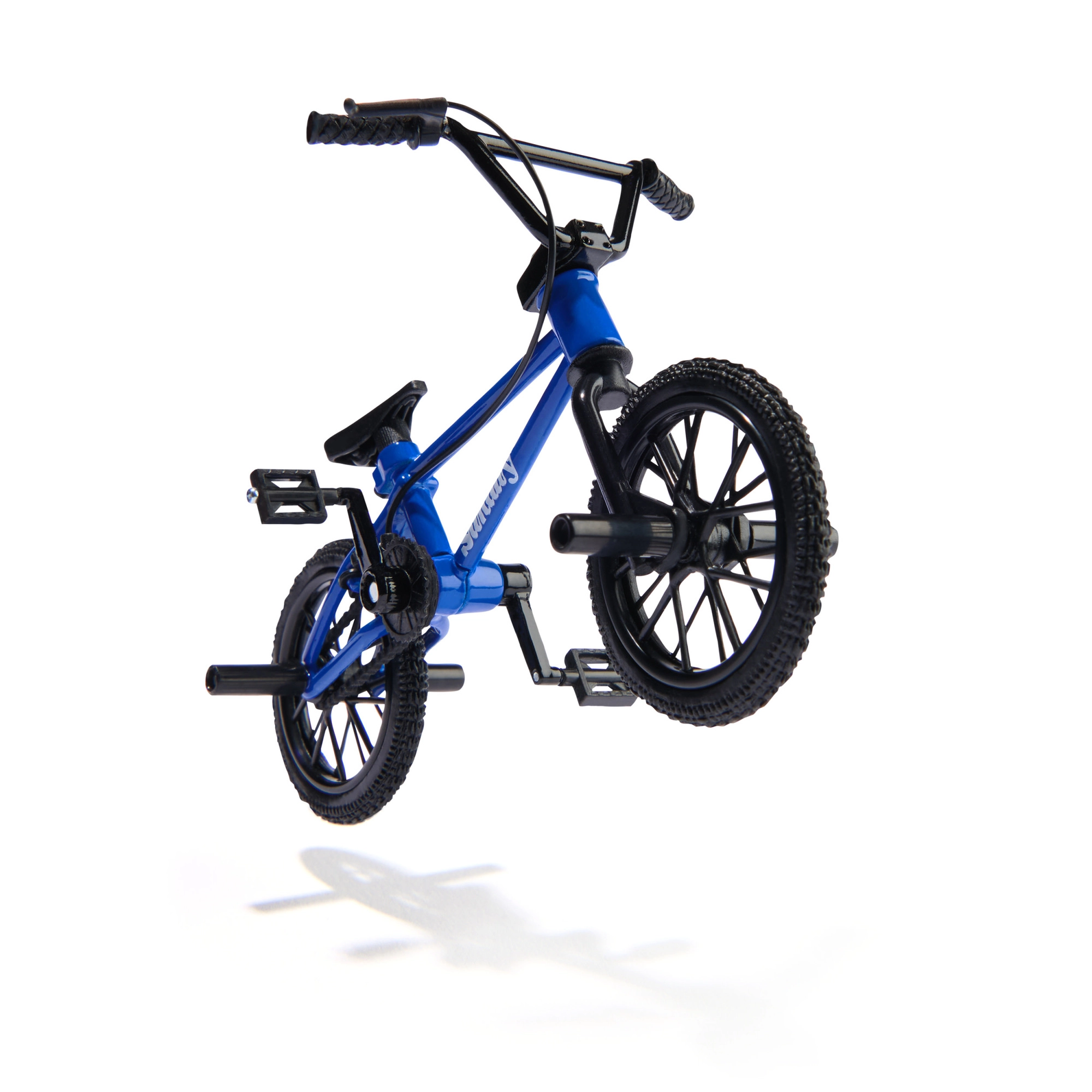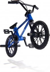 Moder finger BMX SUNDAY z detaljnim okvirjem, naperami, pedali in pegi omogoča trening freestyle trikov kar na mizi.