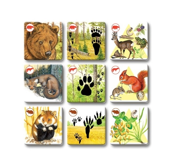 Vsaka trojica kart povezuje sesalca z njegovo sledjo in okoljem ali hrano. Otroci si tako naravno osvojijo znanje in krepijo logično razmišljanje.