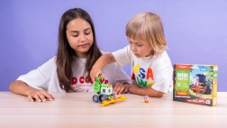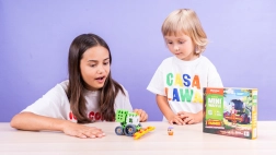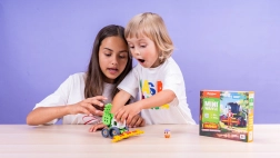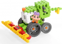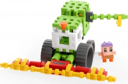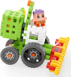 Iz 60 delov sestavite barvit kombajn z velikimi kolesi in sprednjo žetveno letvijo. Naj kmet vozi stroj in žanje »polja« v vaši otroški igralnici.
