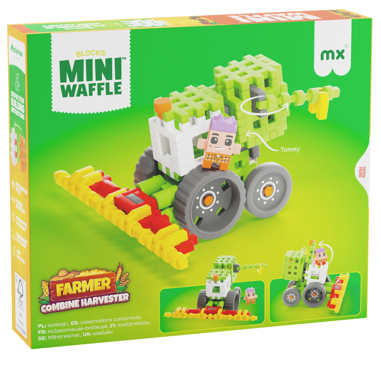 Vstopite v življenje na kmetiji in sédite za volan kombajna! Sestavljanka Marioinex Mini Waffle Kmet – kombajn otrokom omogoča spoznavanje dela kmeta, žetje žita in ustvarjanje novih zgodb pri vsaki igri. Deli Mini Waffle so prijetni na dotik, enostavni za sestavljanje in zaradi svoje prožnosti zdržijo tudi navdušeno otroško ravnanje.
