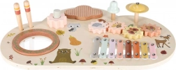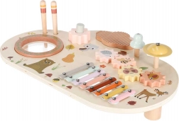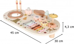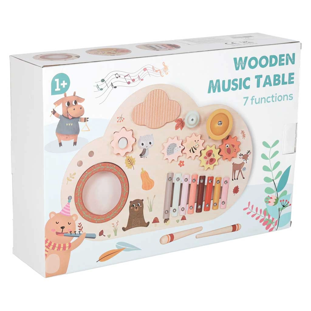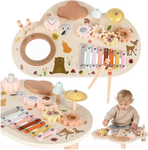 Odkrijte svet ritma in ustvarjalnosti s to leseno glasbeno mizico za najmlajše. Združuje ksilofon, bobnič, zvonček in druge senzorične elemente za zabavo, učenje in razvoj motorike. Zaradi stabilnih nog, kakovostnega lesa in pastelnega dizajna je idealna izbira za prve glasbene raziskave.