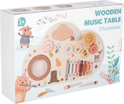 Mizica ponuja pregledno razporeditev elementov in varno izvedbo iz naravnega lesa. Nežne pastelne barve in ilustracije živalic spodbujajo domišljijo, medtem ko robustna konstrukcija zagotavlja stabilnost pri igri.