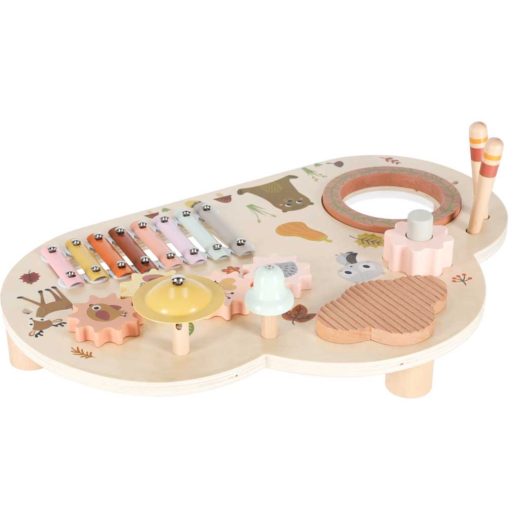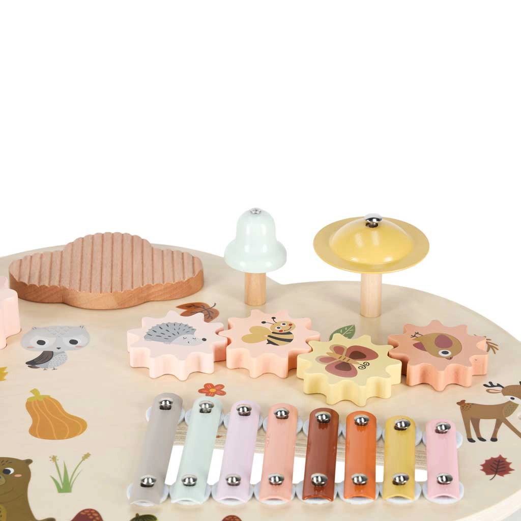 Nizke noge in robustna plošča iz naravnega lesa zagotavljajo stabilnost pri tolčenju, vrtenju in ploskanju – idealno za malčke.