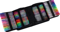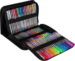 Odkrijte univerzalen set za šolo, pisarno in prosti čas: 100 gelnih pisal v bogati paleti barv in učinkov, poleg tega še 100 nadomestnih polnil. Pregleden zložljiv etui na zadrgo drži vsako pisalo na svojem mestu, zato imate vse barve vedno pri roki in varno shranjene.