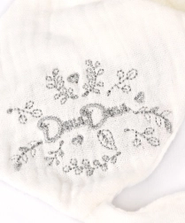 Nežni vezeni detajli, moderni sivi odtenki in kakovostna izdelava zagotavljajo varnost in dolgo življenjsko dobo. Komplet je priložen v darilni škatli, zato je pripravljen, da razveseli ob rojstvu dojenčka ali kot prijetno darilo za prvo opremo.