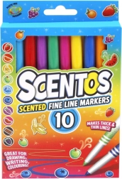 Dišeči tanki flomastri SCENTOS 10 kos združujejo natančnost, žive barve in zabavno sadno aromo. Nežna konica omogoča risanje tankih in izrazitejših linij, zato so odlični za zapiske, podrobne ilustracije in barvanje. Klasično belo ohišje z barvnimi elementi in logotipom SCENTOS pritegne na prvi pogled.