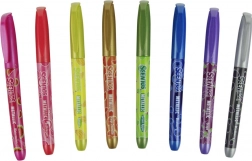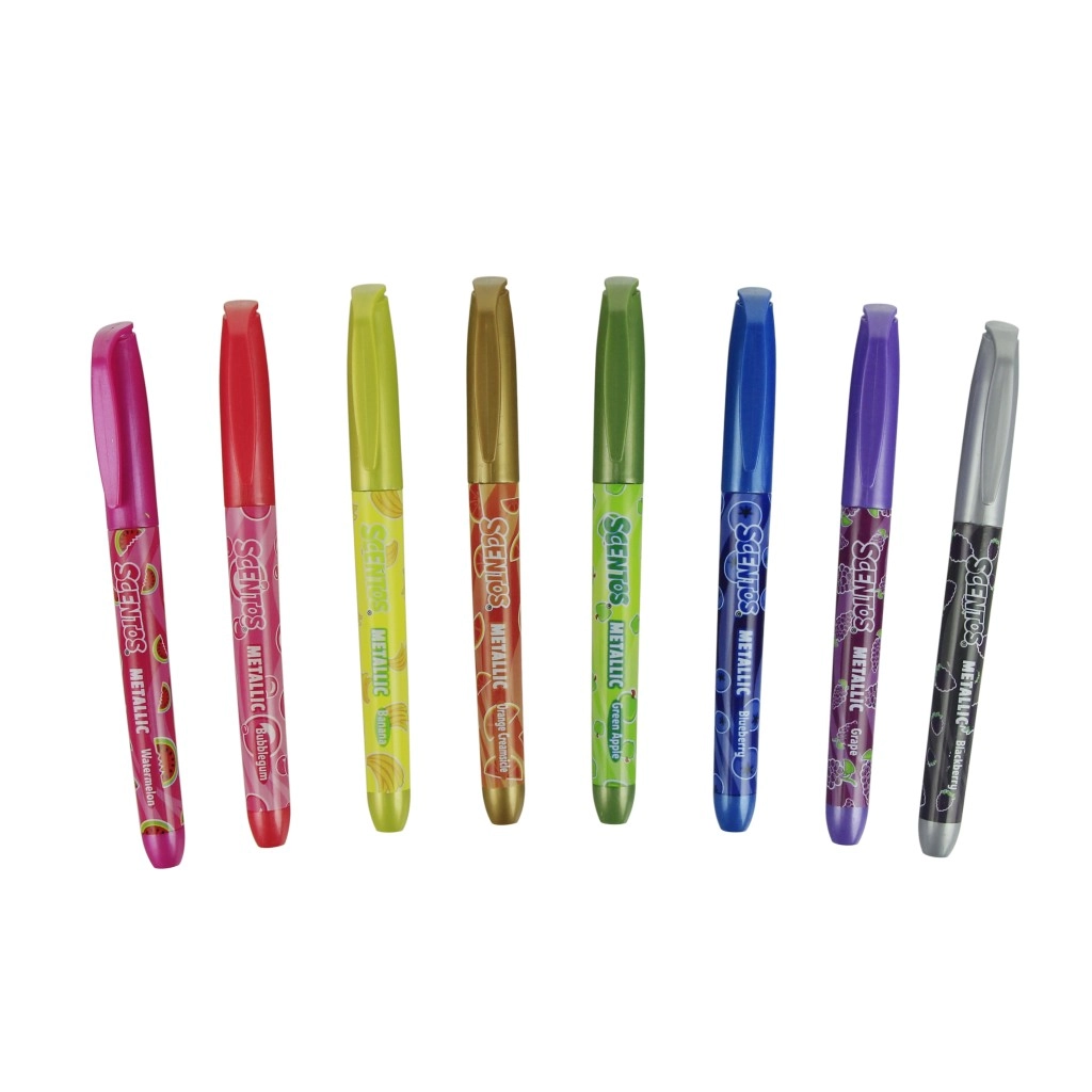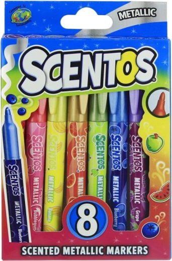 Popestrite svoje projekte s kovinskimi flomastri SCENTOS, ki združujejo intenzivne barve, bleščeč sijaj in prijetne sadne dišave. Vsak flomaster ima barvno ohišje, ki ustreza odtenku, zato vedno hitro posežete po pravi barvi. Kovinski pigment še posebej lepo izstopa na temnih papirjih in vašim izdelkom doda eleganten učinek.