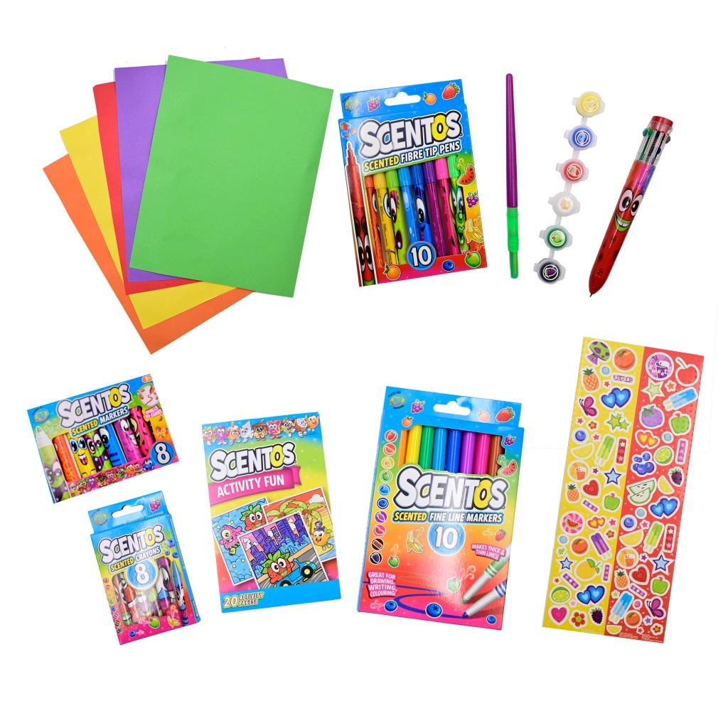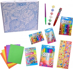 Dišeči ustvarjalni set SCENTOS – srednji je odlična izbira za male umetnike, ki imajo radi barve in vonje. Zahvaljujoč široki paleti pisalnih in slikarskih pripomočkov lahko otroci preizkušajo različne tehnike in ustvarjajo izvirna dela. Dišave posameznih pripomočkov dajejo ustvarjanju nov razsežnostni pridih in spodbujajo nadaljnje raziskovanje.