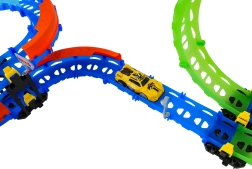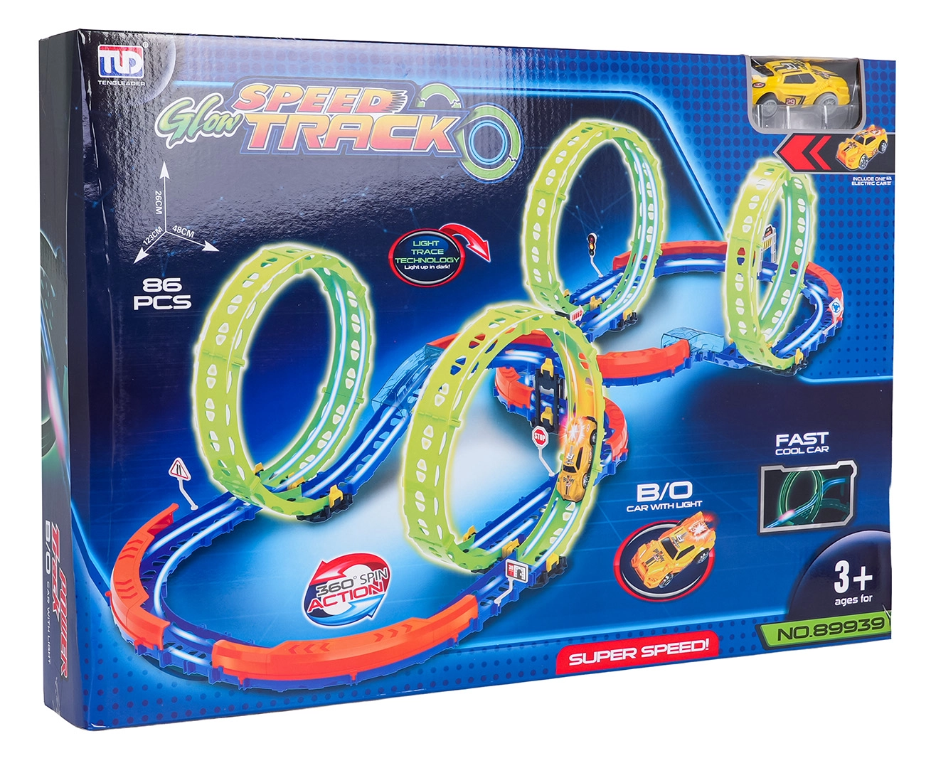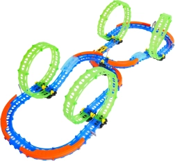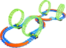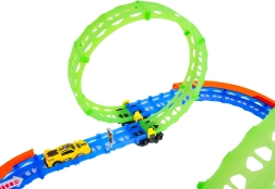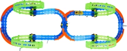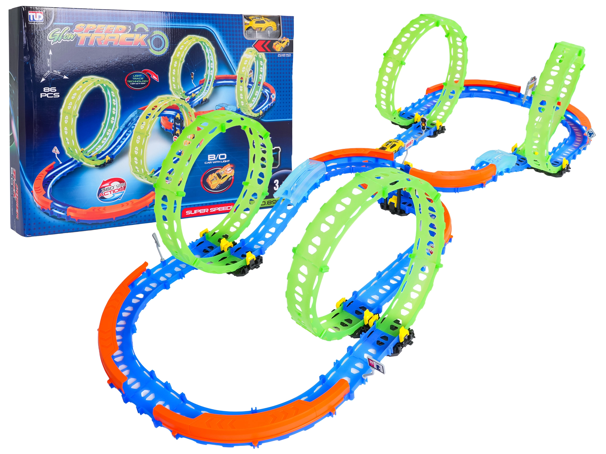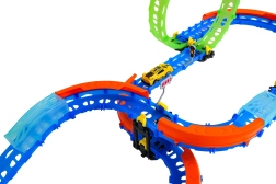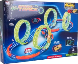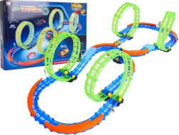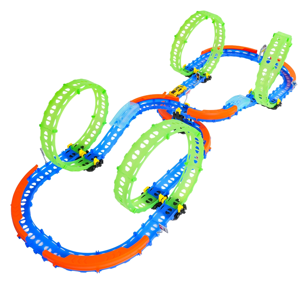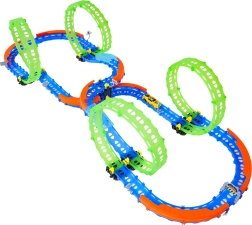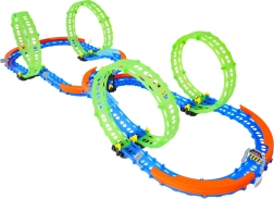 Ta barvita dirkalna steza ponuja vrhunske kaskaderske vožnje in kreativno sestavljanje. Zaradi fluorescentnih zank in svetlobnega učinka avtomobilčka posebej izstopa v temi, kjer se spremeni v žarečo progo polno napetja. Robustne ograje v ovinkih pomagajo avtomobilček varno držati na stezi.