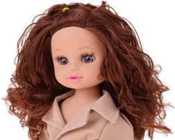 Ljubka punčka Kalinka je pripravljena na jesenske pustolovščine. Ima goste kodraste kostanjeve lase, premične okončine in nosi eleganten bež trenč s pasom, legice in črne čevlje. Zahvaljujoč zvočni funkciji ob pritisku na trebušček predvaja veselo melodijo. Odlična za kreativno igro, česanje in preoblačenje.
