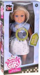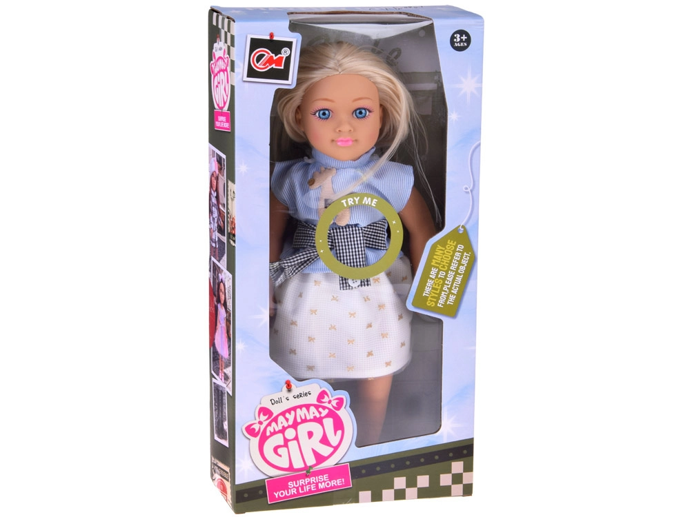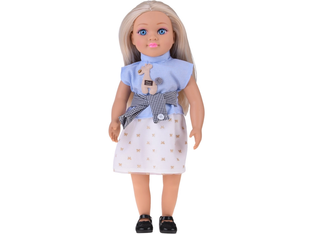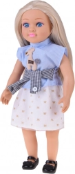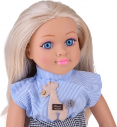Odkrijte čar klasčne modne punčke, ki združuje privlačnost, kakovost in igrivost. Zahvaljujoč dolgim blond lasem je odlična za česanje in ustvarjanje pričesk, medtem ko ji velike modre oči in nežen nasmeh dajejo prikupen izraz. Mehko telesce in kakovostni plastični deli zagotavljajo udobno rokovanje in vzdržljivost pri vsakodnevni igri.