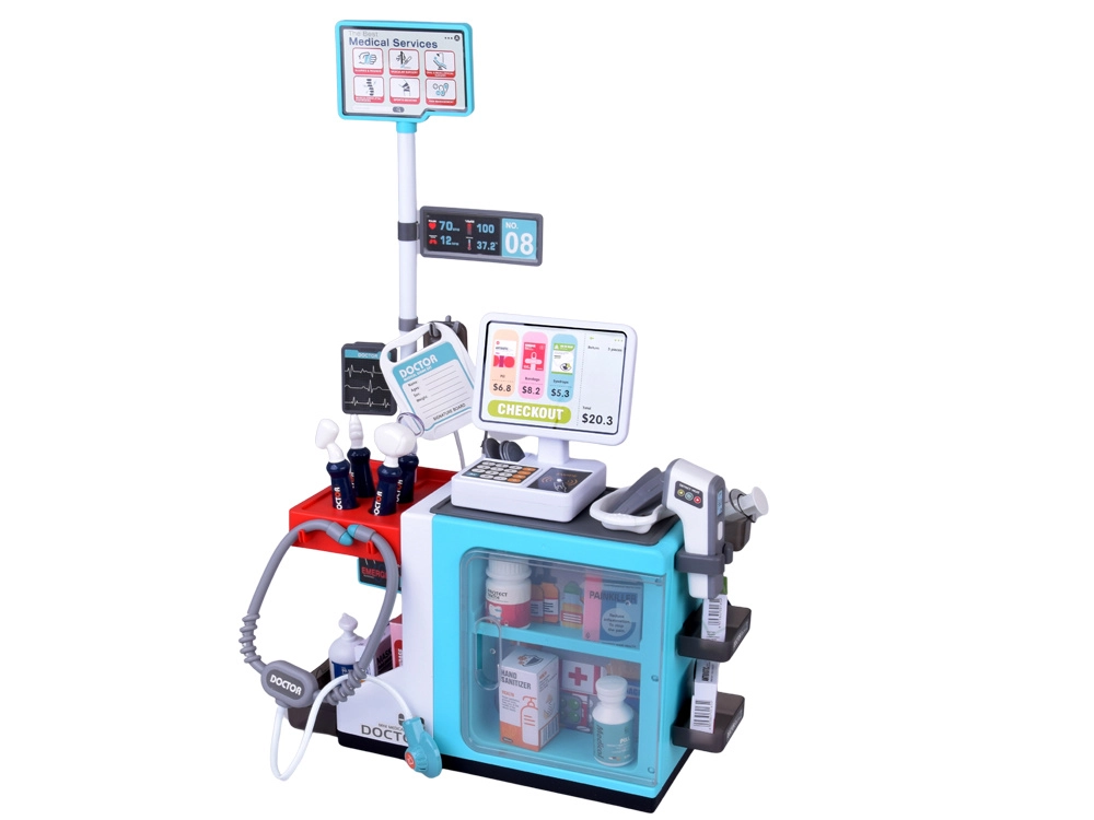 Odkrijte vsestransko otroško kliniko in lekarno v enem – bogato opremljen komplet za igro zdravnika, farmacevta in pacienta. Zahvaljujoč interaktivni blagajni s terminalom, realističnim orodjem in številnim dodatkom komplet spodbuja ustvarjalnost, empatijo in učenje skozi igro. Ne manjkajo stetoskop z zvoki srčnega utripa, elektronski termometer, plačilna kartica in denar ter shranjevalne omarice za pregledno igro.