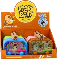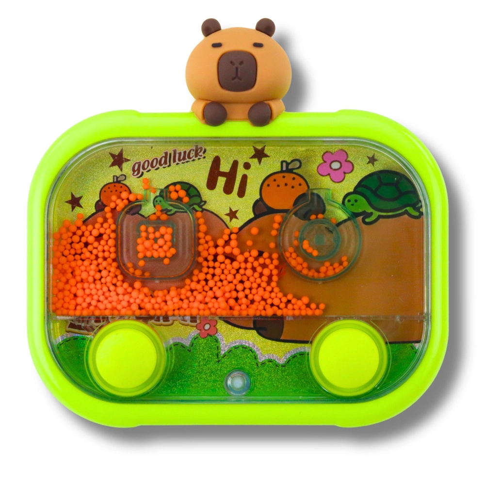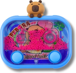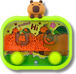 Odkrij čar klasične vodne igre v novi, barviti izvedbi z motivom kapibare. Igra deluje mehansko – dovolj je pritiskati gumbe, spodbuditi tok vode in natančno usmerjati kroglice v držala. Osvetlitev, aktivirana s pritiskom na kapibaro, razsvetli notranjost igrače in spremeni igranje v še privlačnejšo izkušnjo, zlasti v somraku.