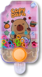 Zabavna vodna igra z ljubkim motivom KAPIBARE v obliki lučke razveseli tako otroke kot odrasle. Dovolj je pritisniti gumb, pretresti vodo in zadeti barvne obročke na zatiče. Igra je brez baterij, kompaktna, lahka in idealna za na pot. Spodbuja potrpežljivost, fino motoriko in nudi dolge minute zabave.