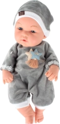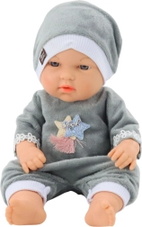 Ljubka dojenček punčka v sivem pižamcu in kapici bo razveselila vsakega otroka. Ima realistične obrazne poteze, premične ročice, nogice in glavico ter je prijetna na dotik zahvaljujoč mehkim oblačilom. Zaradi kompaktne velikosti 30 cm je lahka, enostavna za prenašanje in idealna za igro doma in na poti.